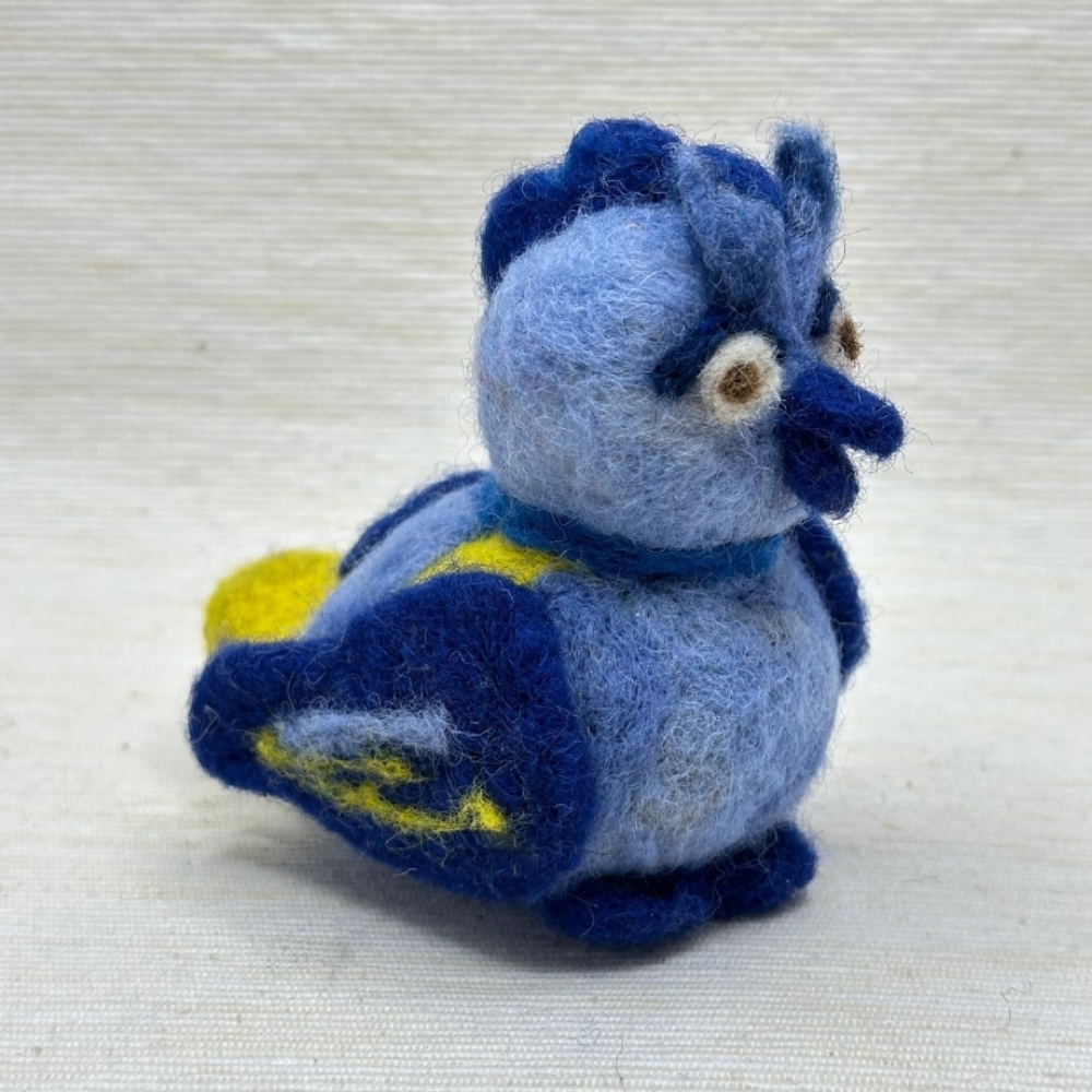 Dieser Vogel wurde von mir aus gefärbter und ungefärbter Schafwolle handgefilzt. Er ist ein bezaubernder Dekorationsartikel für jedes Bücheregal, Fensterbrett, jeden Schreibtisch und ihren Lieblingsplatz.